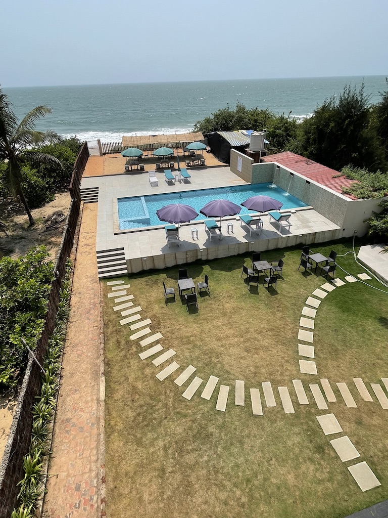 Swimming PoolAn air-conditioned bedroom with a balcony on the east overlooks a coconut palm orchard, a comfortably sized toilet, a spacious living-dining space with a kitchenette, a roll-out sofa-bed that sleeps two people. This sitting space opens onto a large balcony on the west which overlooks the Arabian Sea. Solar heated hot water 24/7, dish TV for entertainment, natural well water that is purified by RO (Reverse Osmosis) and UV (Ultra Violet) filters; therefore, safe for drinking. Plenty of parking space with vehicular access right up to the entrance of the premises.